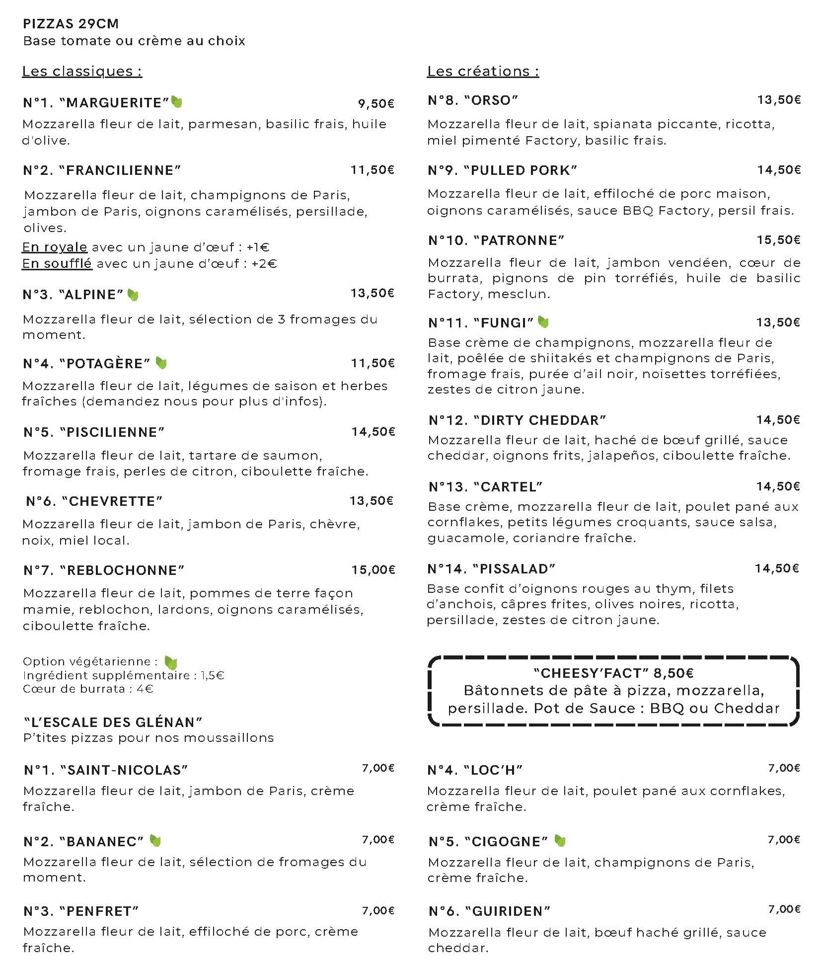 Chez FACTORY. notre pâte est pétrie sur place avec une FARINE SUR-MESURE issue d’une AGRICULTURE RAISONNÉE. Grâce à notre LONGUE FERMENTATION et une note de SARRASIN nous vous garantissons une PATE FINE MAIS AERIENNE ET DIGESTE.